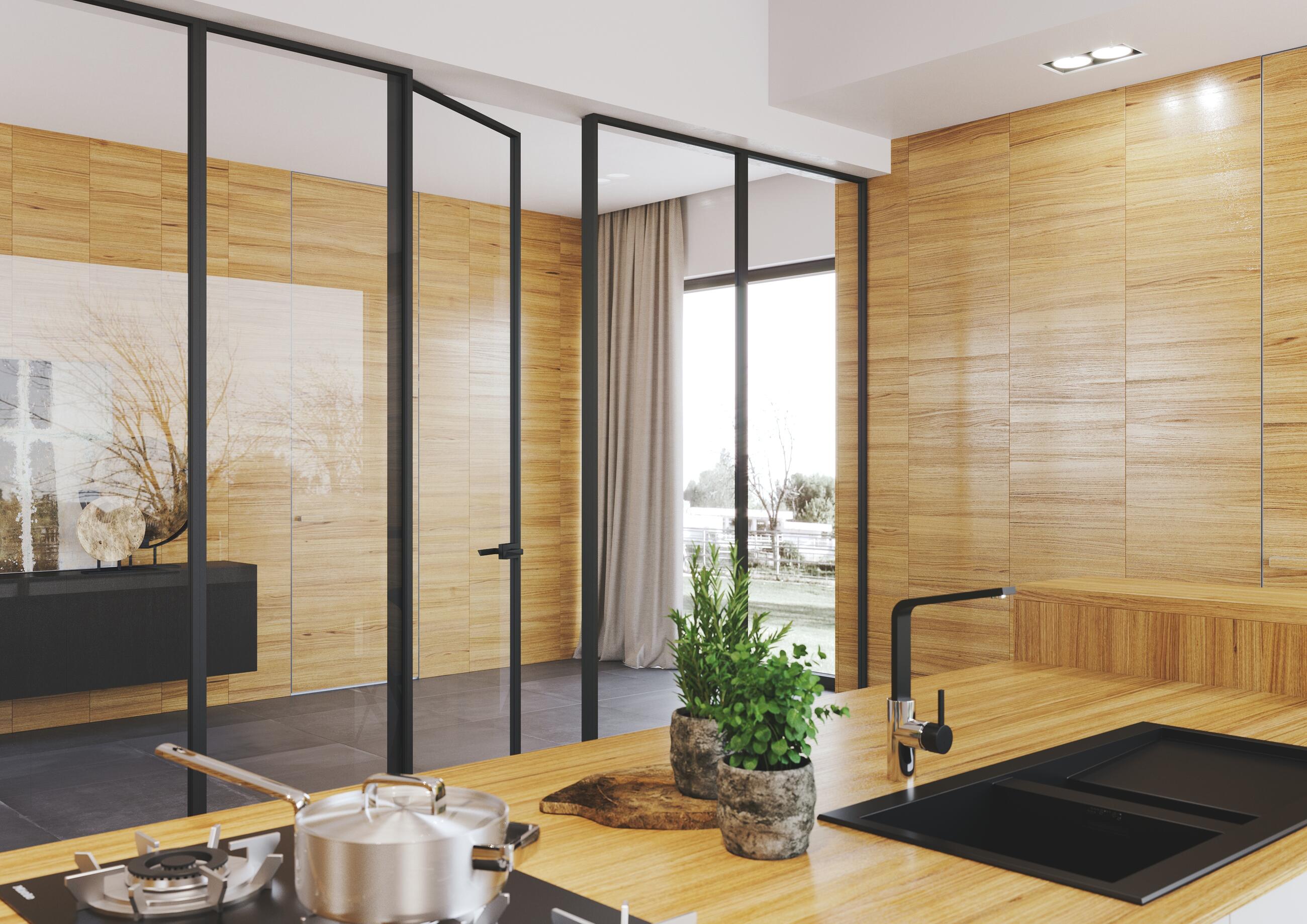 Vyrábíme i hliníkovou zárubeň Garde určenou pro otočné dveře naší řady Idea.