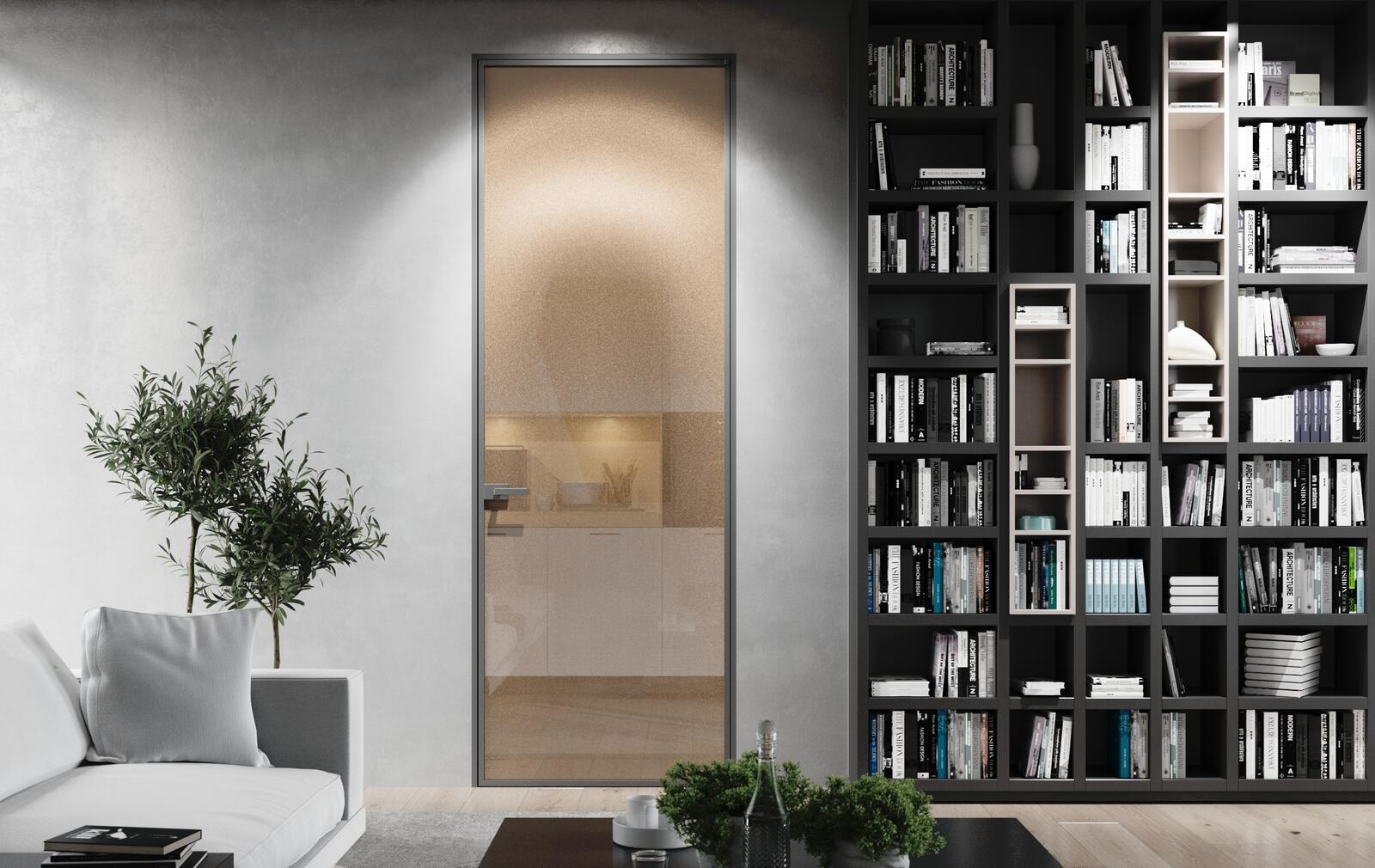 Velké oblíbenosti díky široké variabilitě opláštění se těší otočné dveře MASTER. Mají rám, který je tvořený profilem z eloxovaného hliníku. Na povrchu dveří je možné mít sklo, a tolakované v jakékoliv barvě RAL, lakované sklo s pískováním nebo Grafosklo, dále MDF desku, dýhu nebo kombinaci materiálů. Izolační vlastnosti dveřního křídla zajišťuje extrudovaný polystyren vyplňující vnitřní prostor dveří.