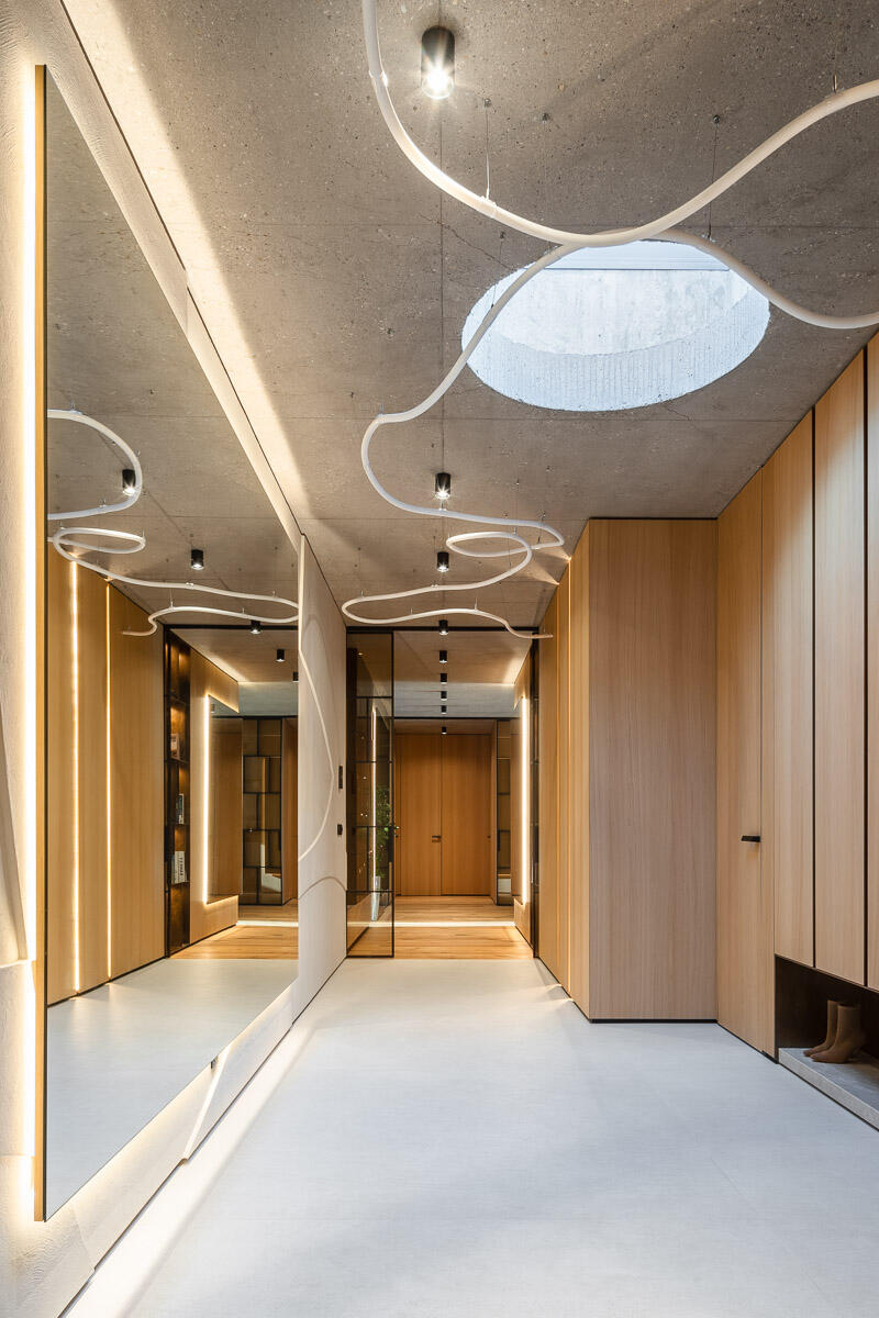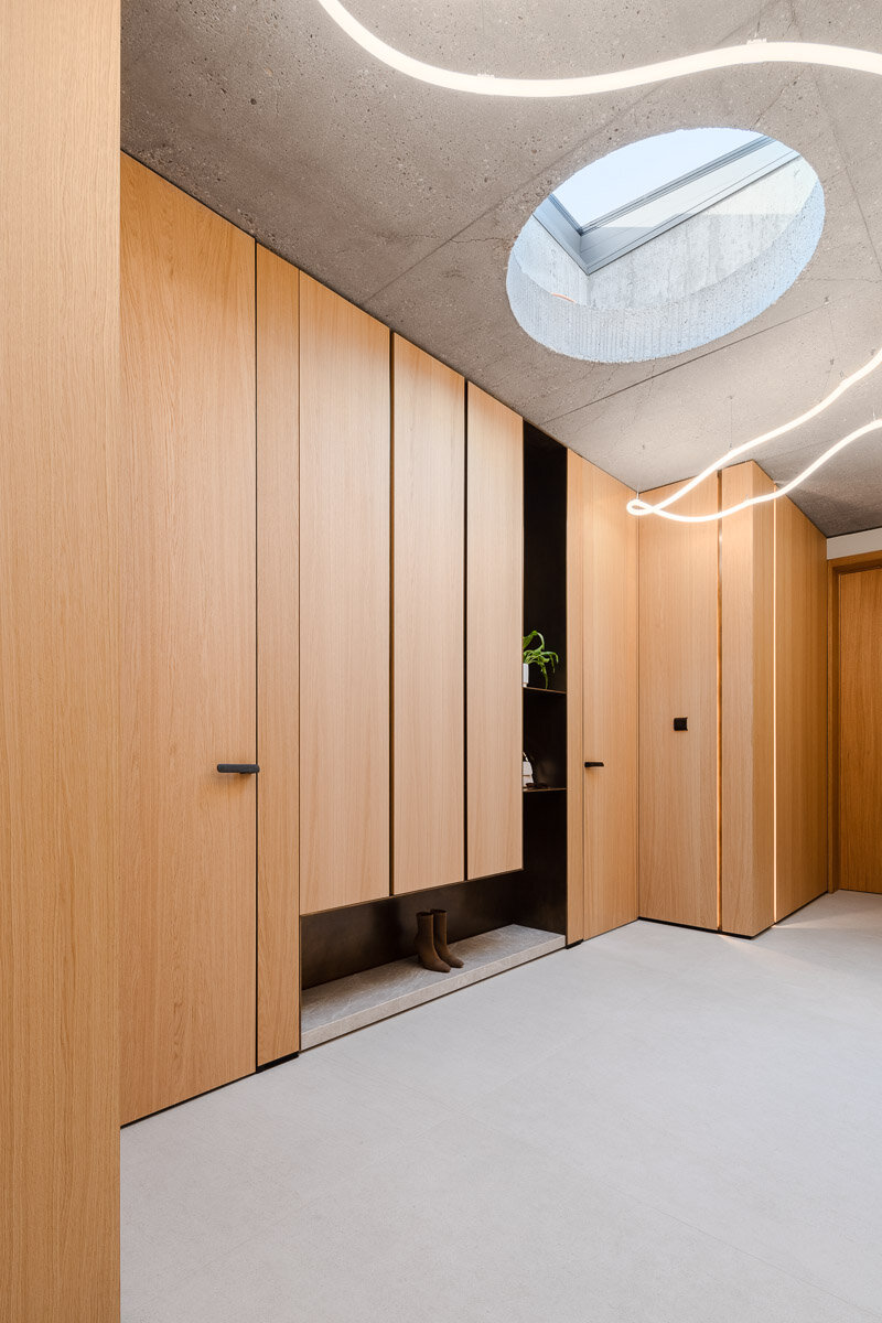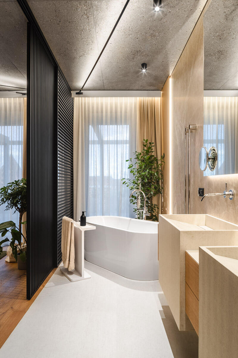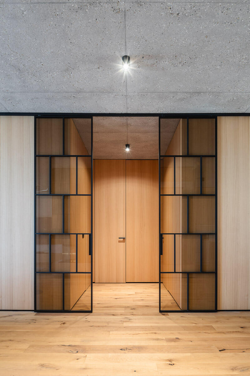 V rámci projektu střešního bytu Hausberg v Bratislavě jsme dodávali interiérové dveře, skryté zárubně a obkladová řešení JAP FUTURE, která se stala přirozenou součástí architektonického konceptu. Dveře v čisté línii bez rušivých detailů podporují klidnou atmosféru interiéru a umožňují vyniknout práci s materiály, světlem a proporcí. Precizní napojení, důraz na detail a akustický komfort potvrzují, že kvalitní technické řešení může být plnohodnotnou součástí architektury. Celý projekt je ukázkou výjimečné práce studia byMOOD, které dokázalo propojit estetiku, funkci a nadčasovost do harmonického celku.