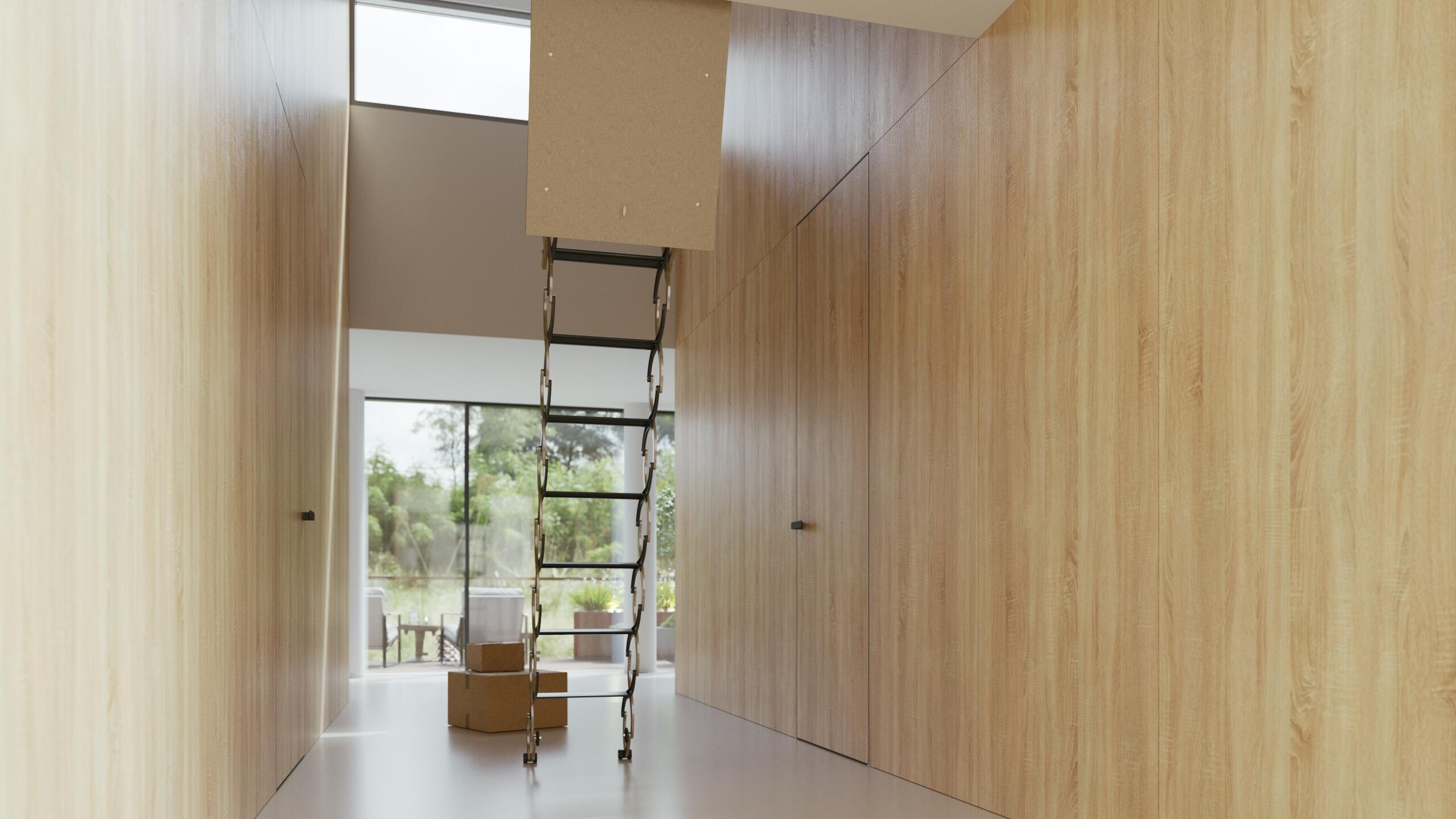 Stahovací schody Verticale mají jednoduché dřevotřískové víko konstruované pro zabudování do zděné příčky. Rám (tedy průchod) schodů dokážeme vytvořit také v atypických rozměrech. Pro výrobu půdních schodů využíváme kvalitní ocel, která je mimořádně odolná a těší se dlouhé životnosti. Minimalistický design schodů navíc nijak nenarušuje celistvý vzhled interiéru.