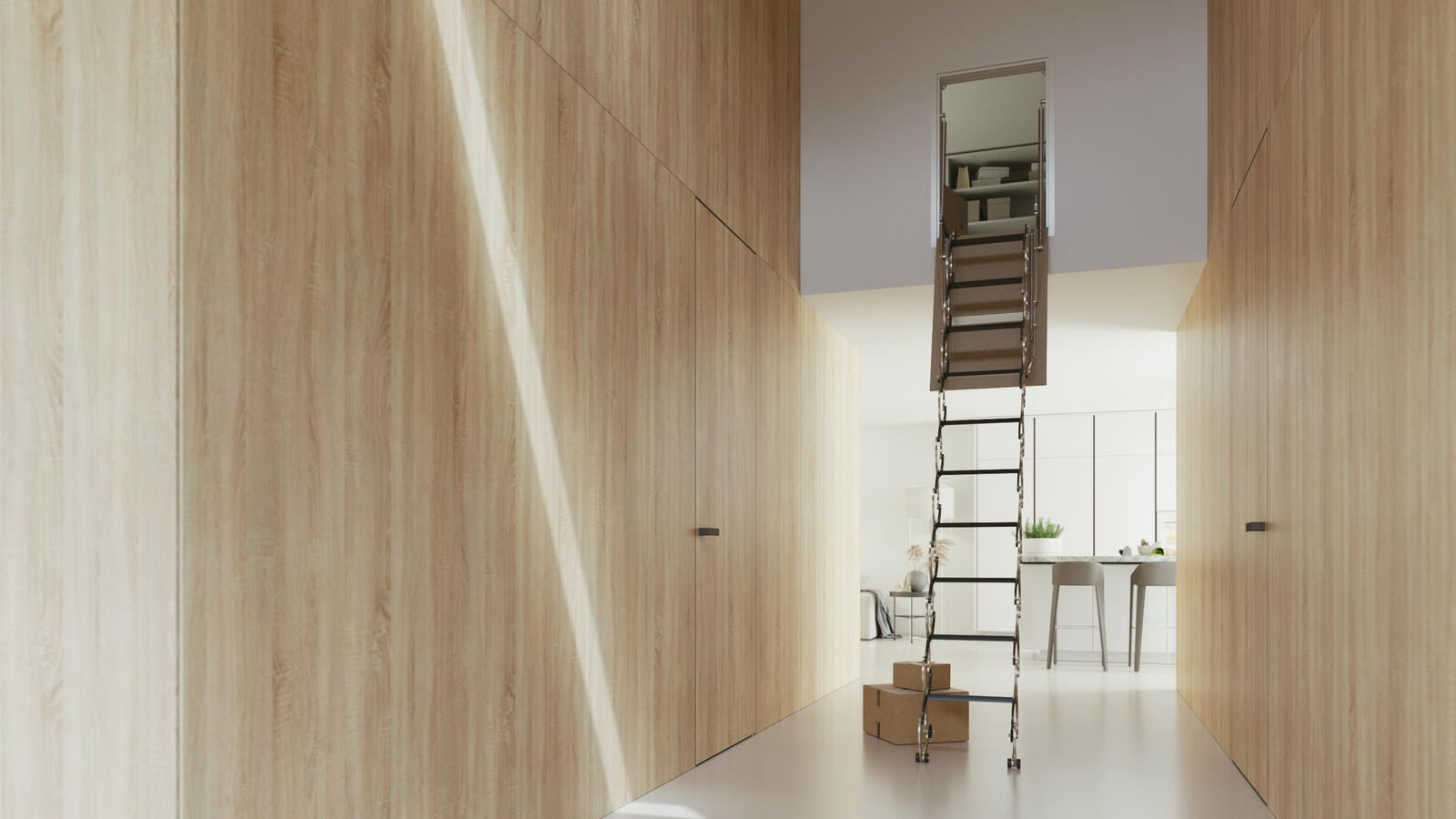 Stahovací půdní schody Verticale jsou stejně jako schody Lusso základním typem námi vyráběných stahovacích půdních schodů. Slouží ke snadnému přístupu do půdních prostor v případě, že potřebujete mít průchod místo stropu ve zdi. Rám (průchod) schodů lze také vyrobit v atypických rozměrech.