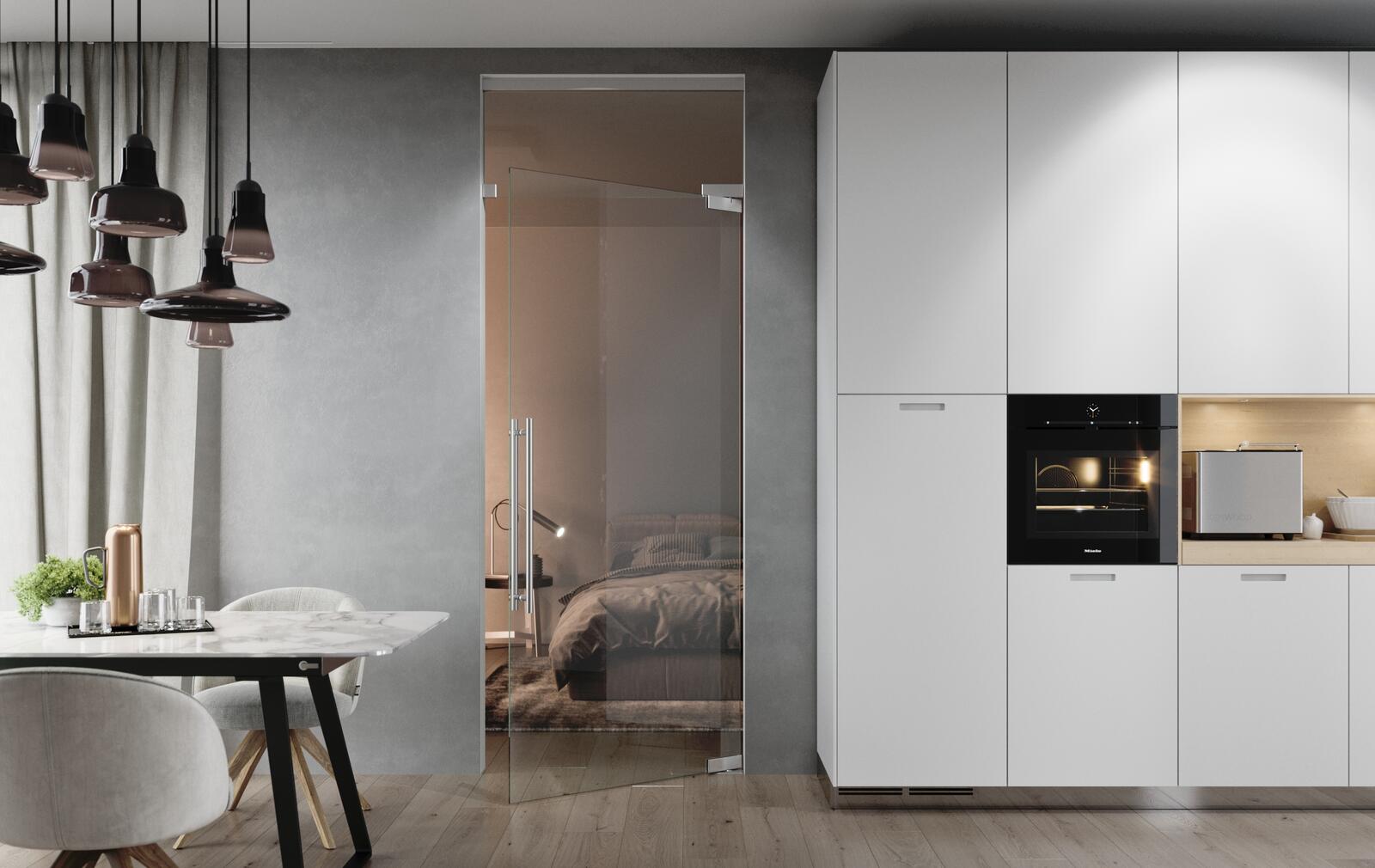 Sestava Beta se skládá z horní kotvící lišty, horního dveřního pantu, úchytu do zdi, madla a dveřního zavírače.