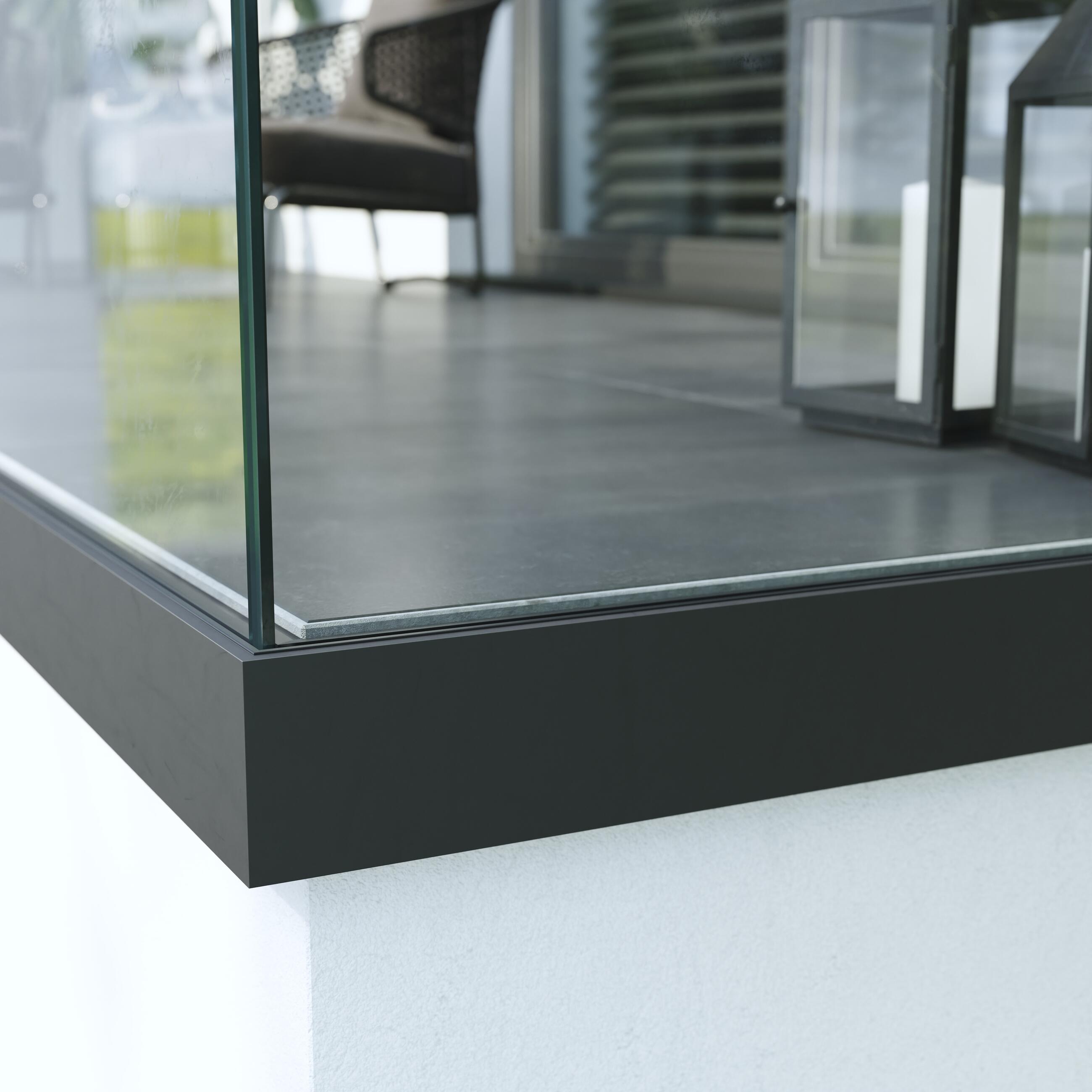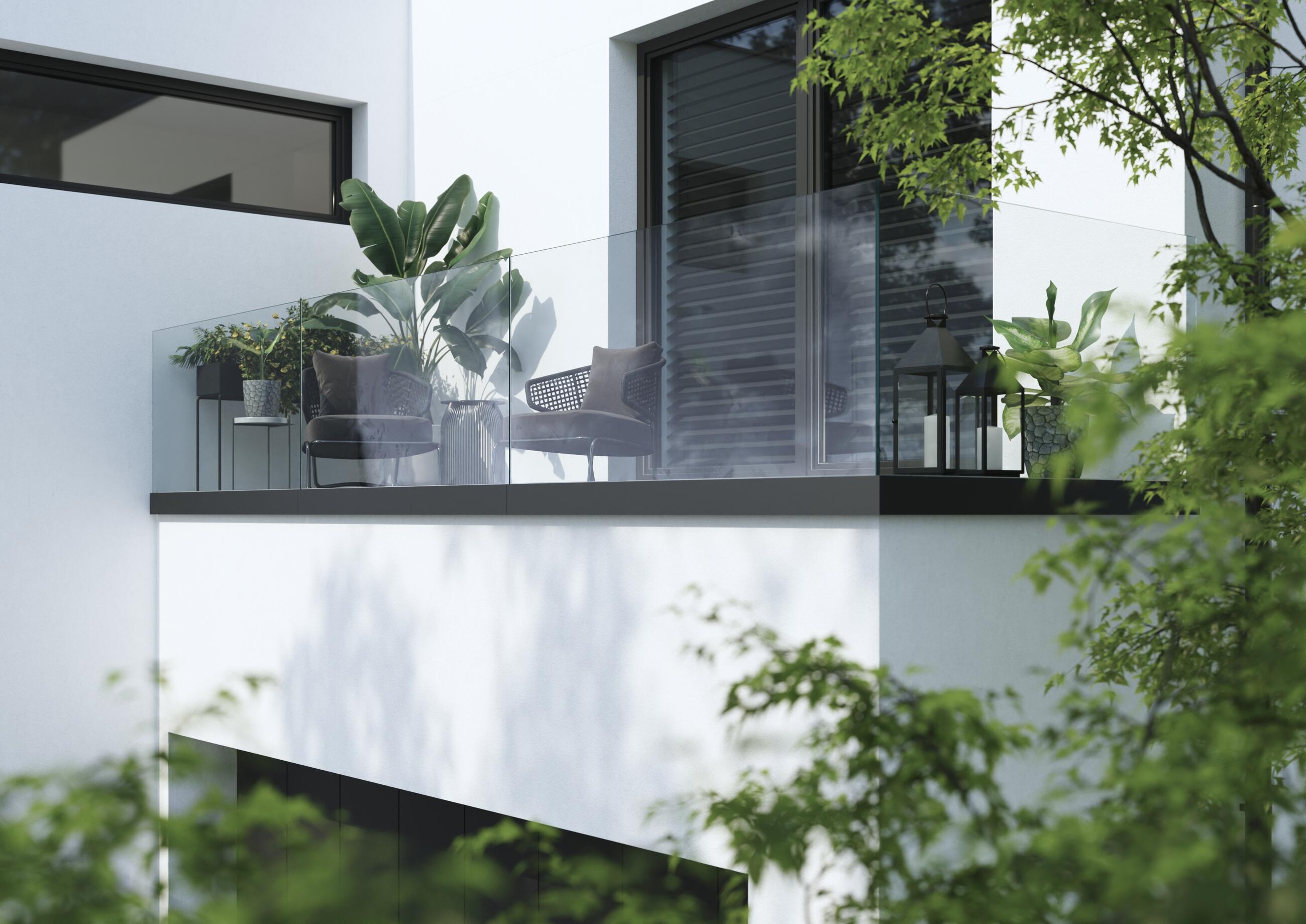 Interiérové a exteriérové zábradlí CONSUL má základní konstrukci tvořenou hliníkovou lištou a lepenými kalenými skly. Je kotveno z boční strany, otvory kotvení jsou následně zakryty krytkami nebo plechovým krytem.