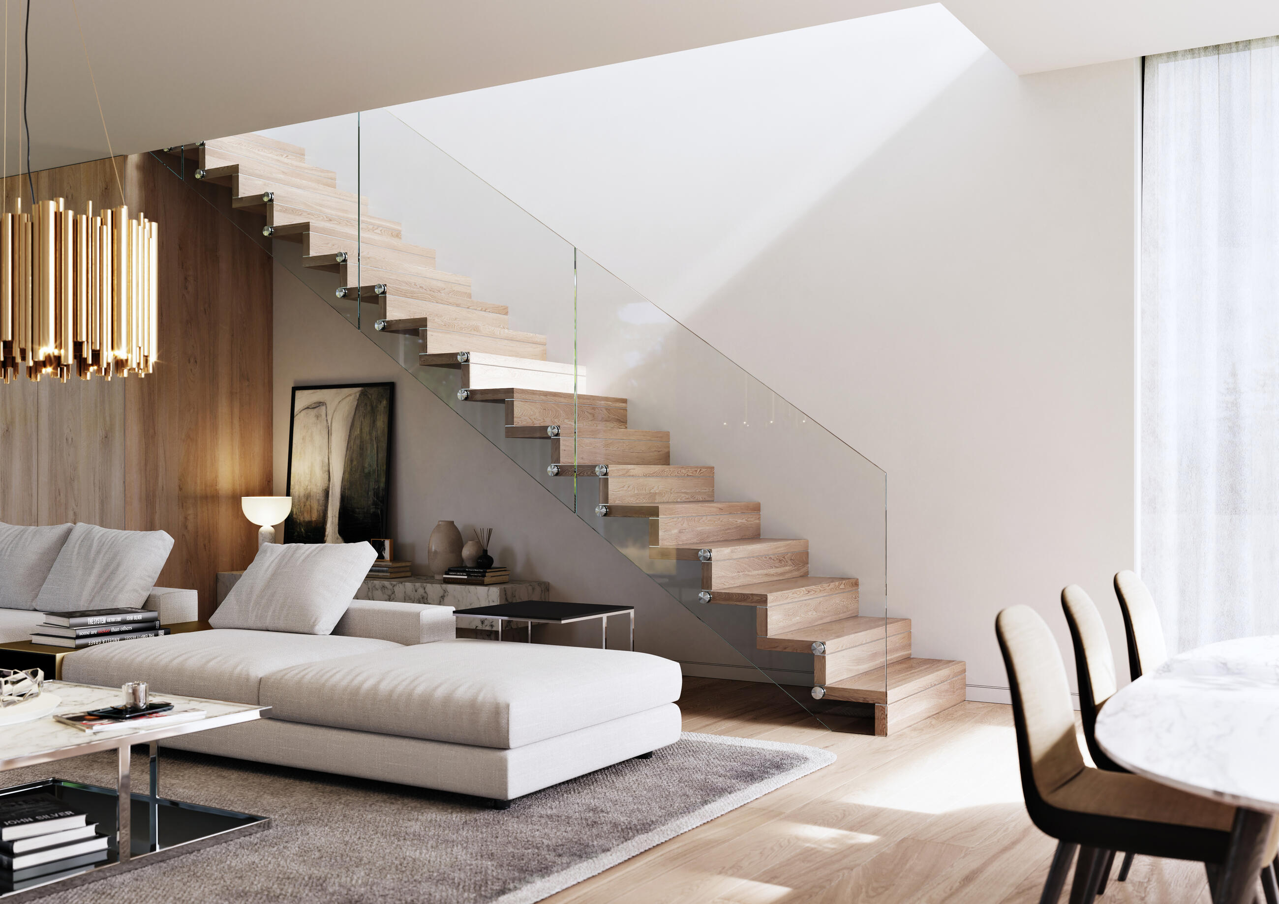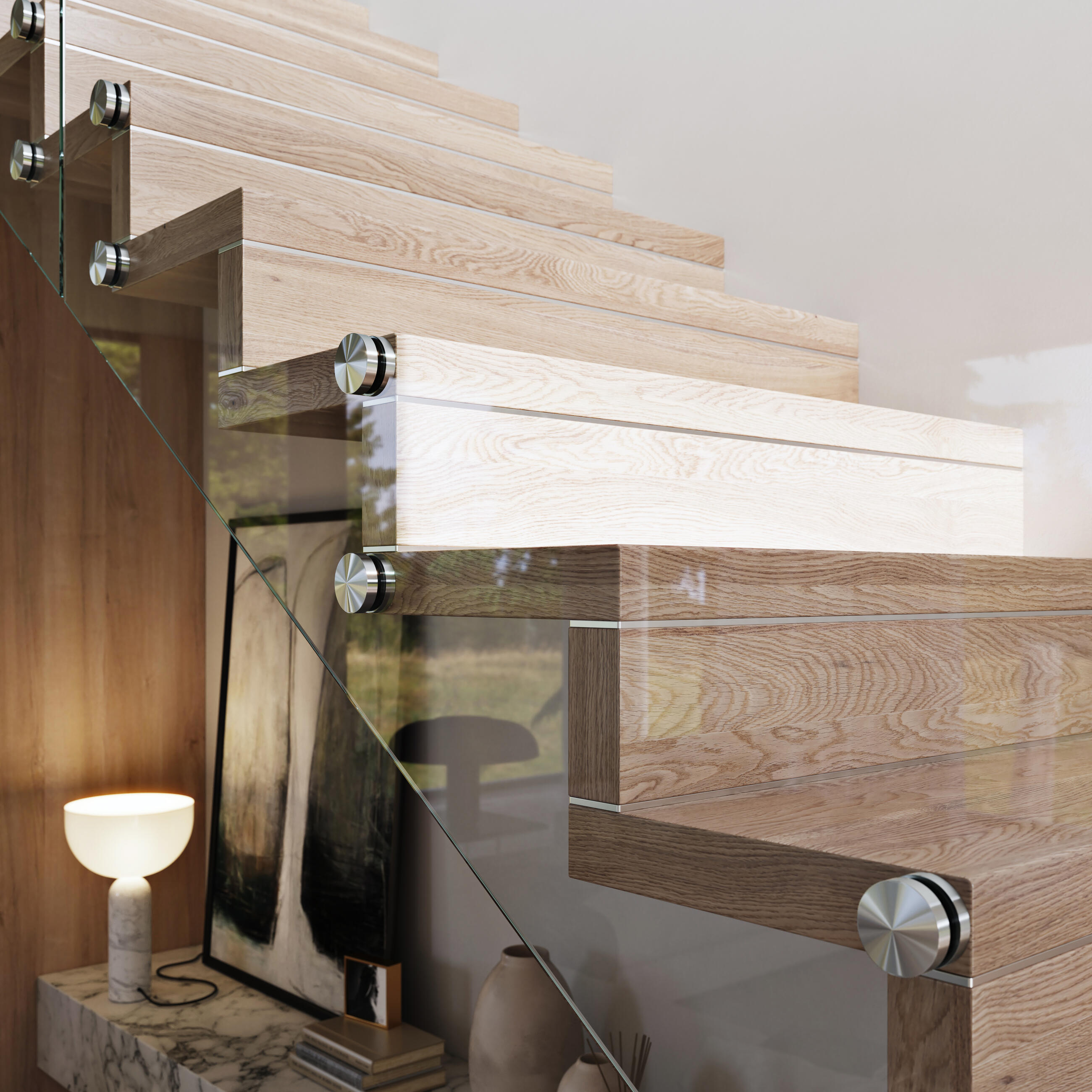 - zbylé části schodišť: kov, dřevo, sklo, nerez