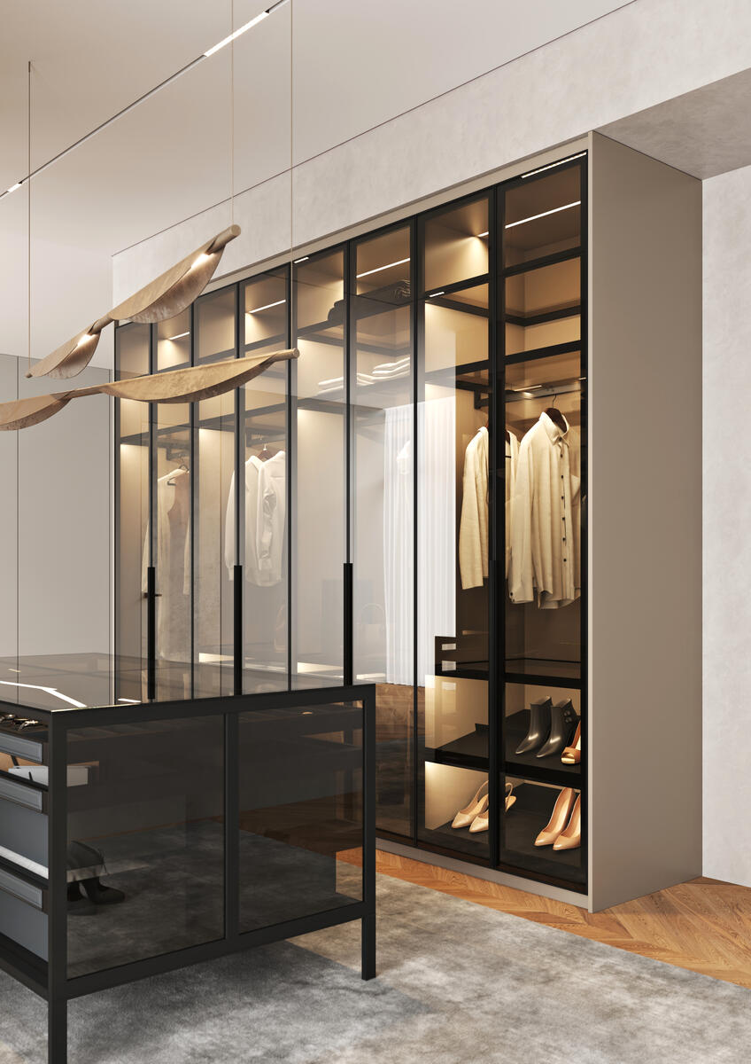 Šatní systém Luminar od společnosti JAP FUTURE není klasická skříň. Je to architektonický prvek, který pracuje se světlem, materiálem a prostorem stejně jako současná architektura. Luminar vzniká vždy na míru konkrétnímu prostoru a umožňuje architektům pracovat s celou výškou místnosti i s otevřenými nebo uzavřenými konfiguracemi. Konstrukce může být doplněna korpusem v přírodní dýze, díky čemuž lze systém sladit s dalšími prvky interiéru.