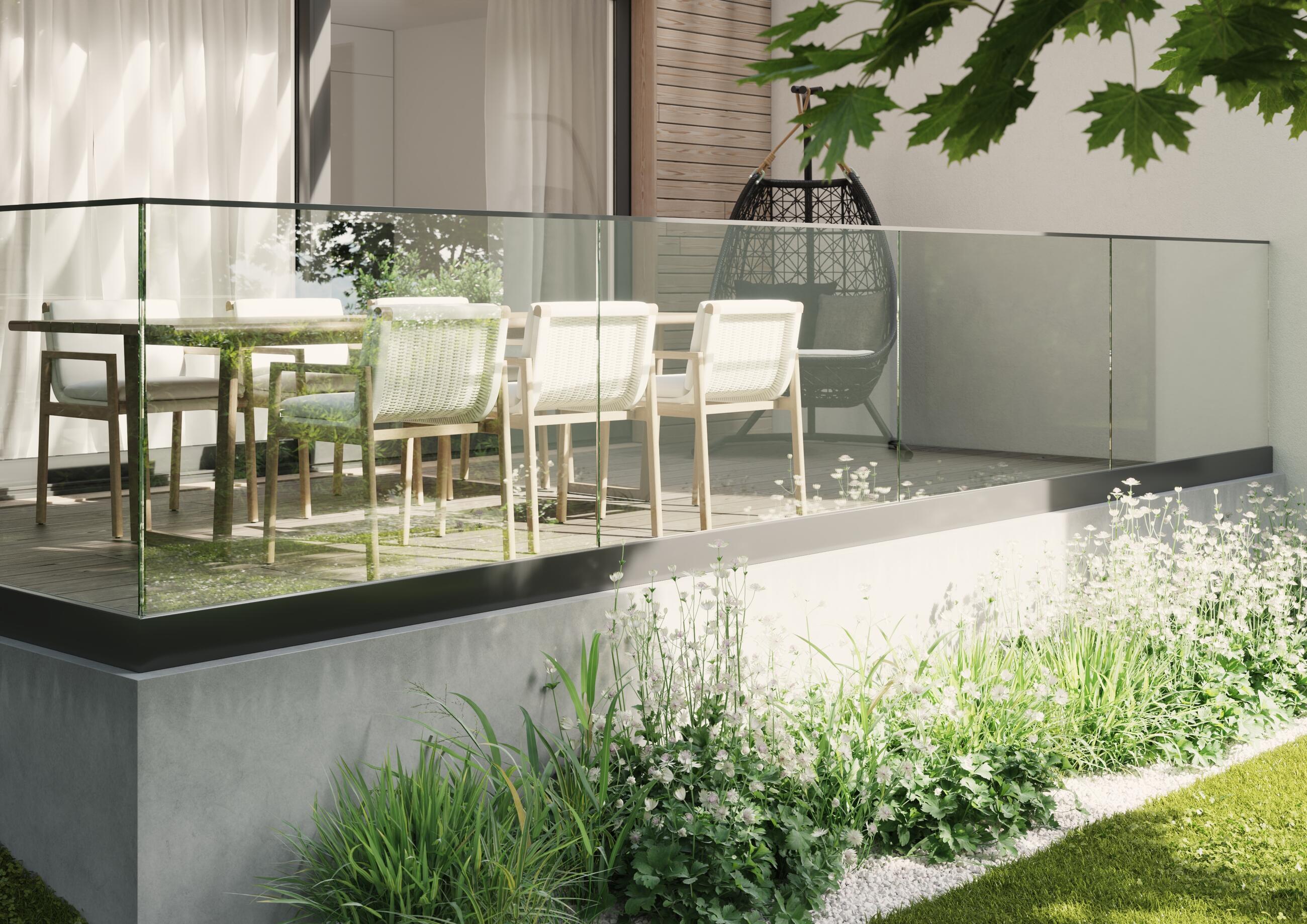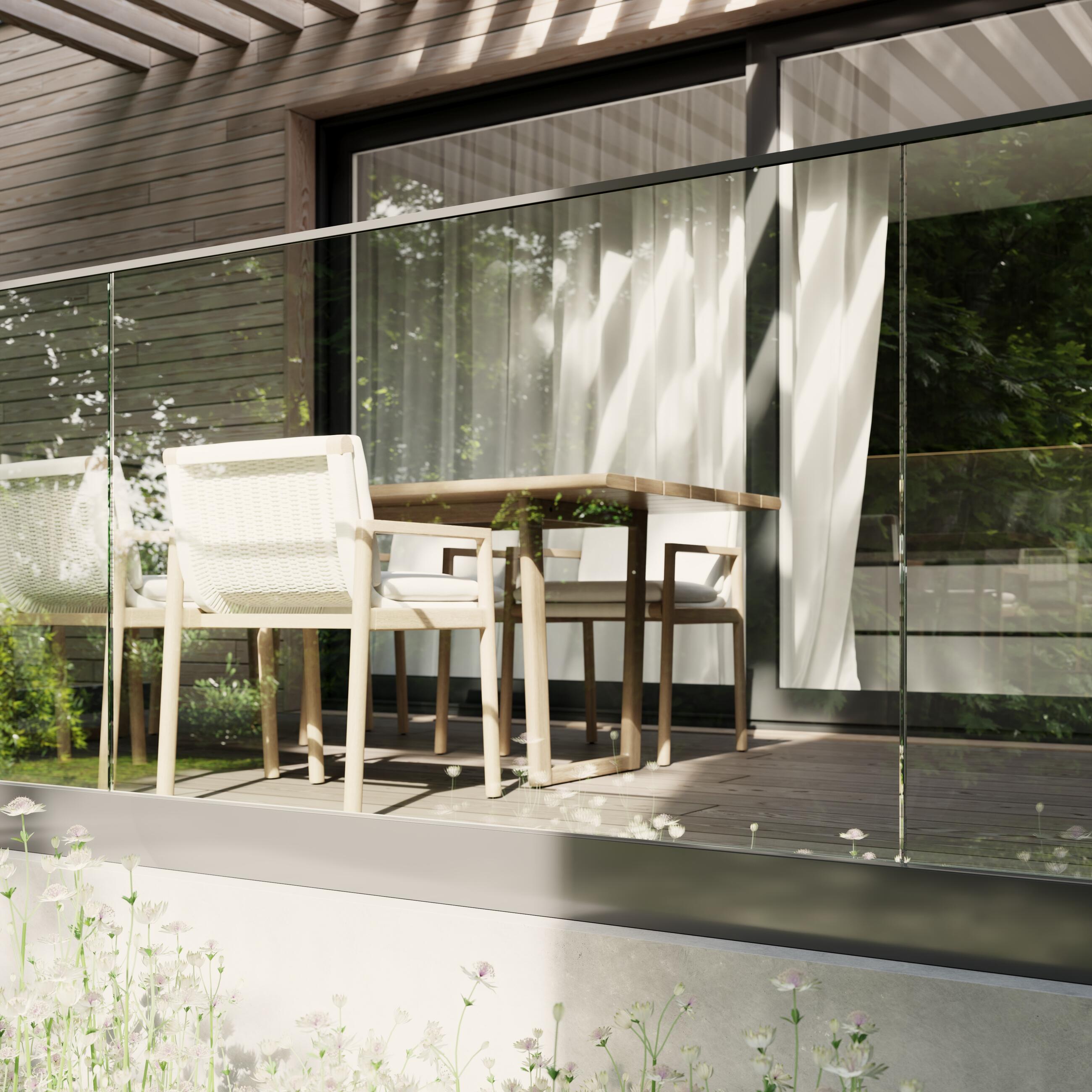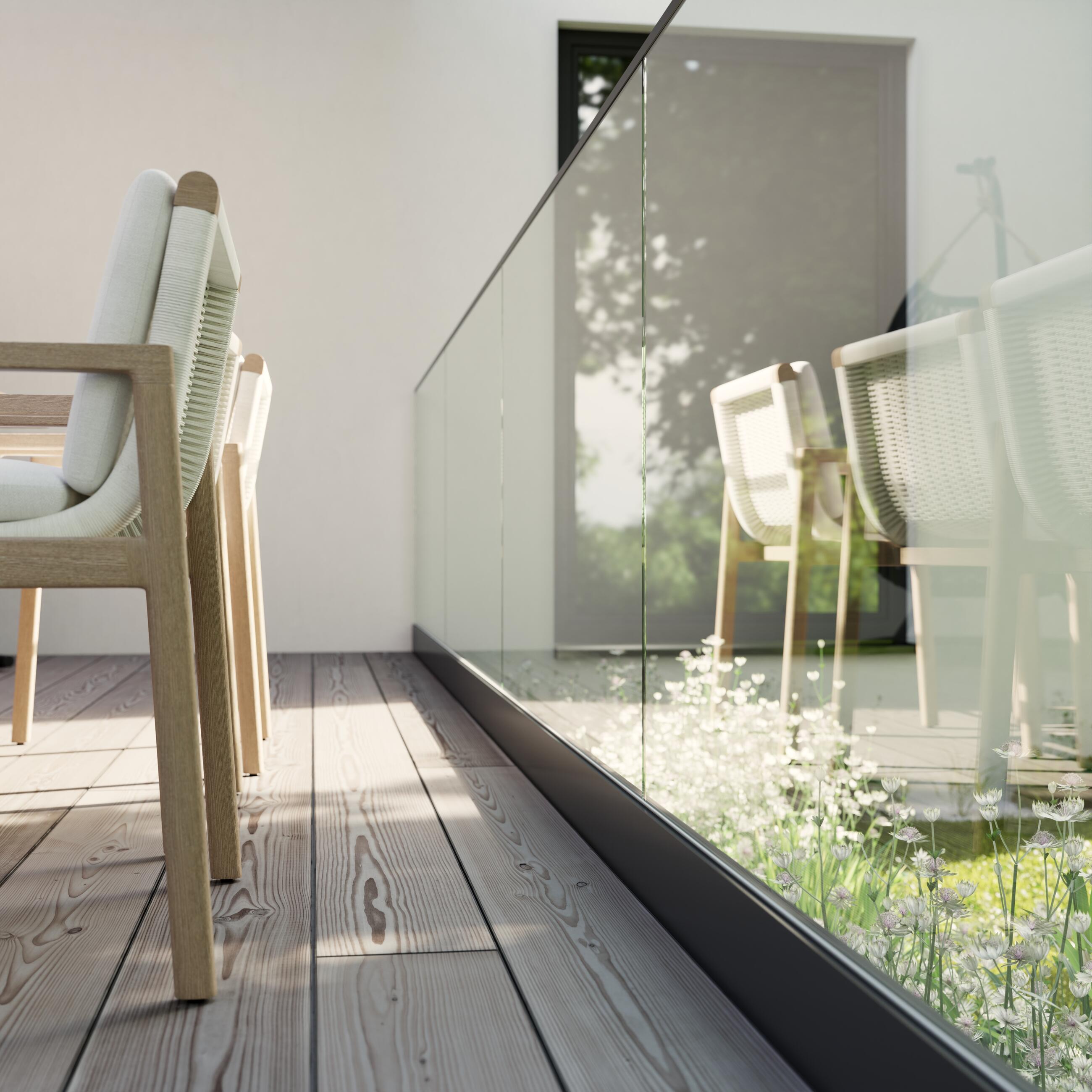 - Výhodou tohoto zábradlí je možnost „utopení“ lišty do skladby podlahy s vystupujícím sklem nad nášlapnou plochou