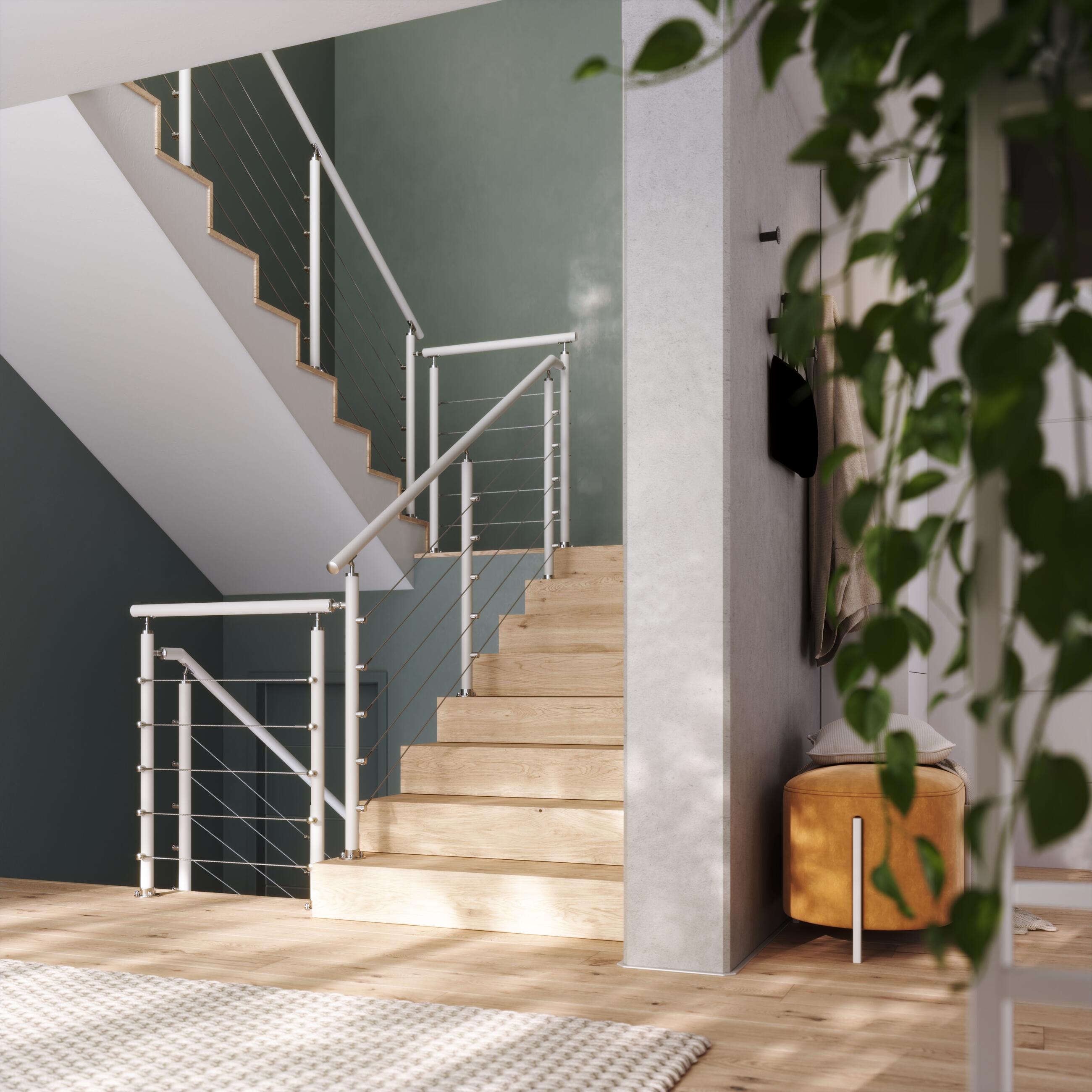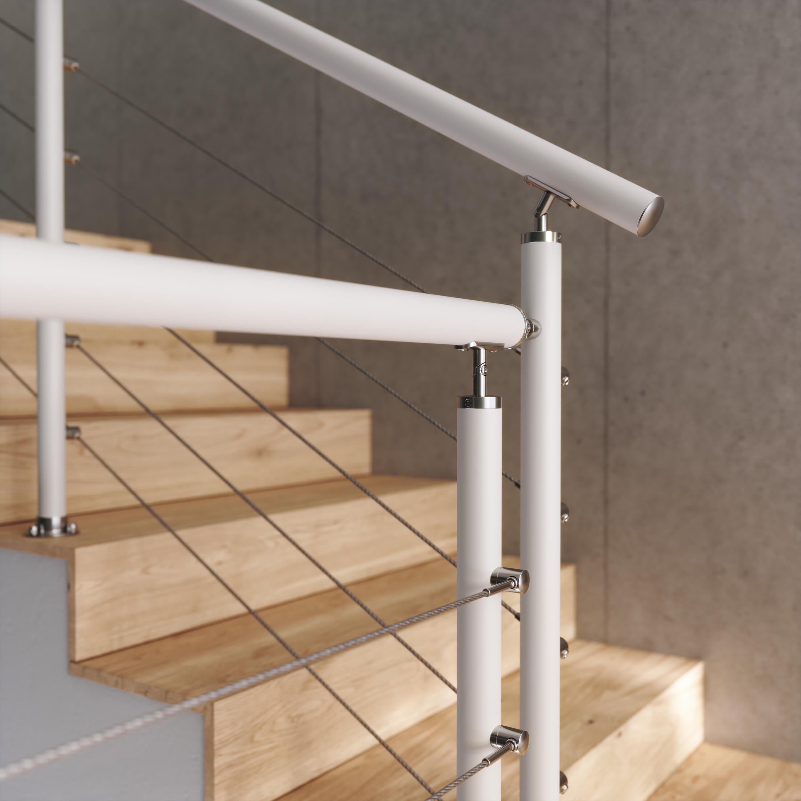 Interiérové zábradlí STRING má základní konstrukci tvořenou sloupky, vodorovnou lankovou výplní a madlem z nerezové oceli, variabilně dřevěným. Nerezové patky se kotví shora nebo z boku schodišťových nášlap. Sloupky a madlo u modelu STRING vyrábíme i v barevných odstínech dle požadavků zákazníka, lanka zůstávají nerezové.