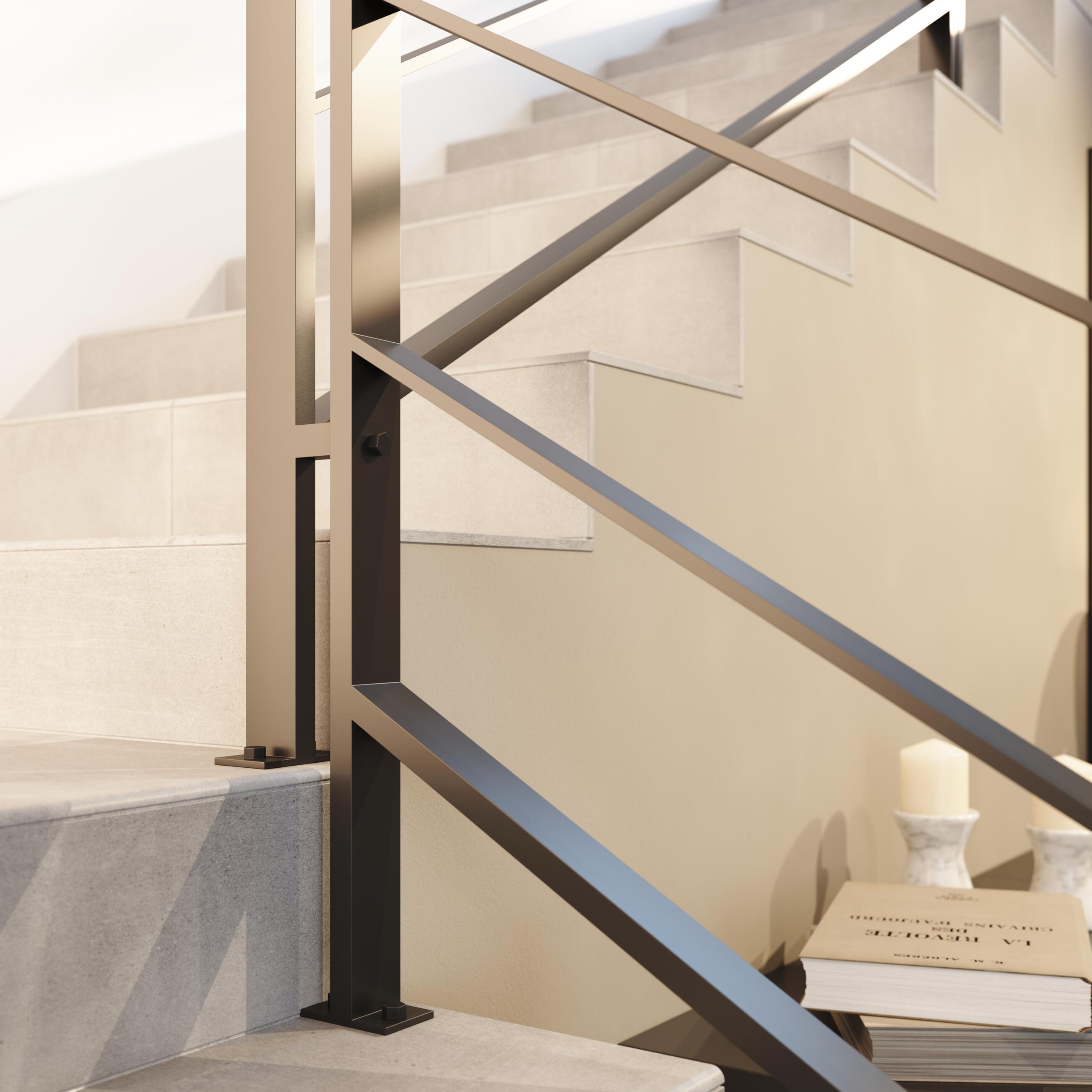 Interiérové zábradlí SAME má základní konstrukci tvořenou ocelovým rámem a výplní z ploché vodorovné pásoviny. Možný výběr rozměrů jednotlivých materiálů dává možnost flexibilitě designu. Kotvení zábradlí je možné dvěma způsoby. Jednak z boku schodiště nebo na sloupcích, umístěných shora na schodišťové nášlapy. Model SAME vyrábíme v barevných odstínech dle požadavků zákazníka, případně v nerezovém provedení.