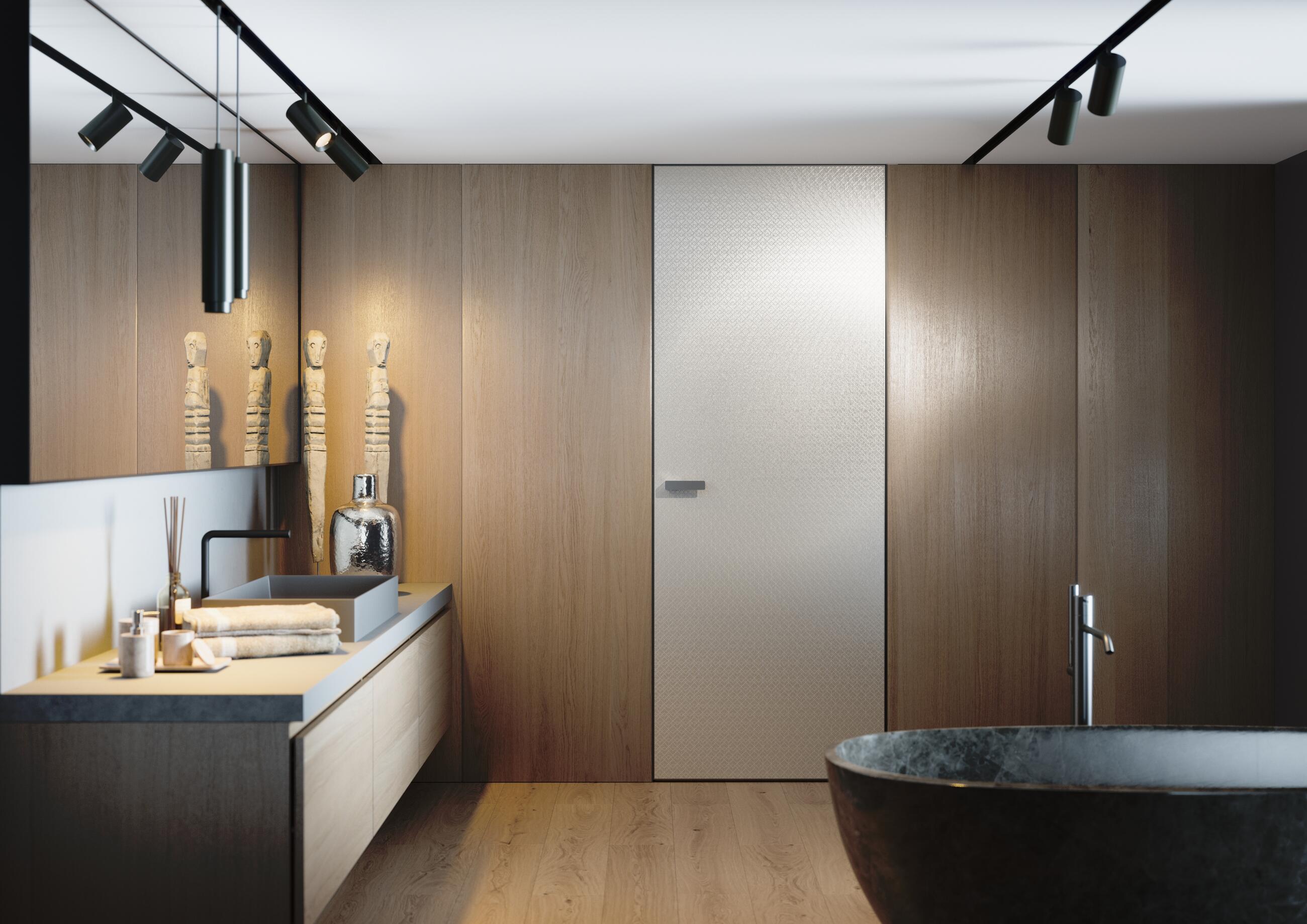 Pokud chceme mít v obkladovém systému průchod, volíme zárubeň Efekta s dveřmi Master, které mohou mít opláštění ve stejné barvě jako má obklad stěny